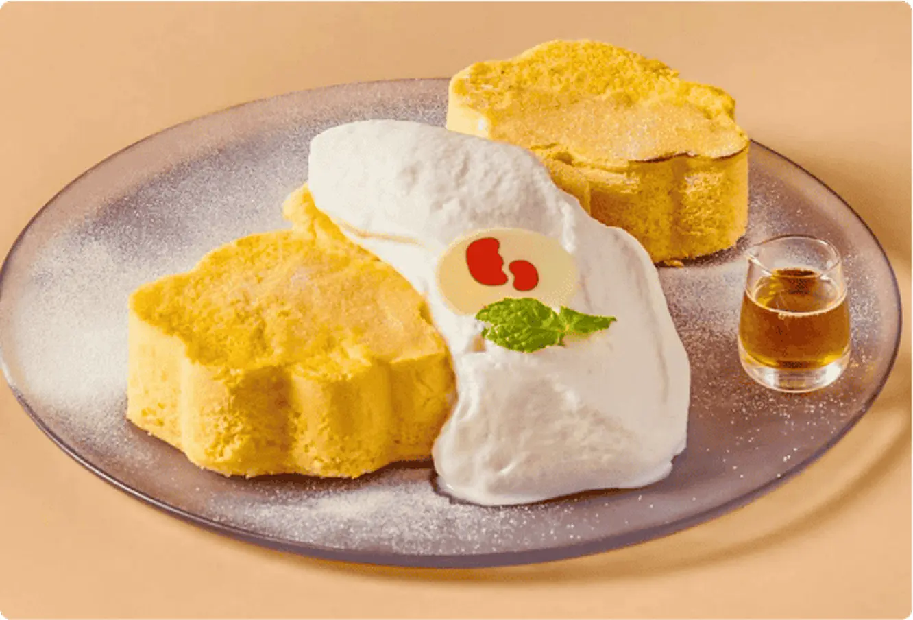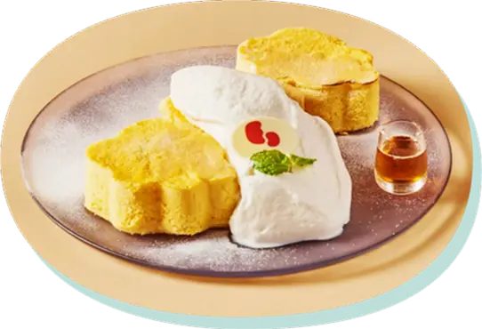 見た目もかわいい雲のパンケーキですが見た目だけじゃありません。卵たっぷりで作っています。生クリームと一緒に!