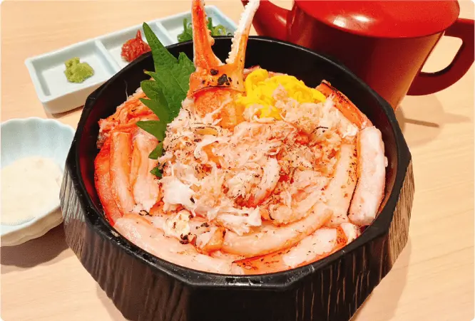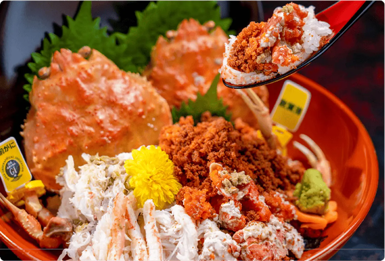 11・12月だけ味わえる敦賀のせいこがに丼。内子は濃厚、外子はぷちぷちキラキラと輝き、冬の海の恵みが咲き誇ります。