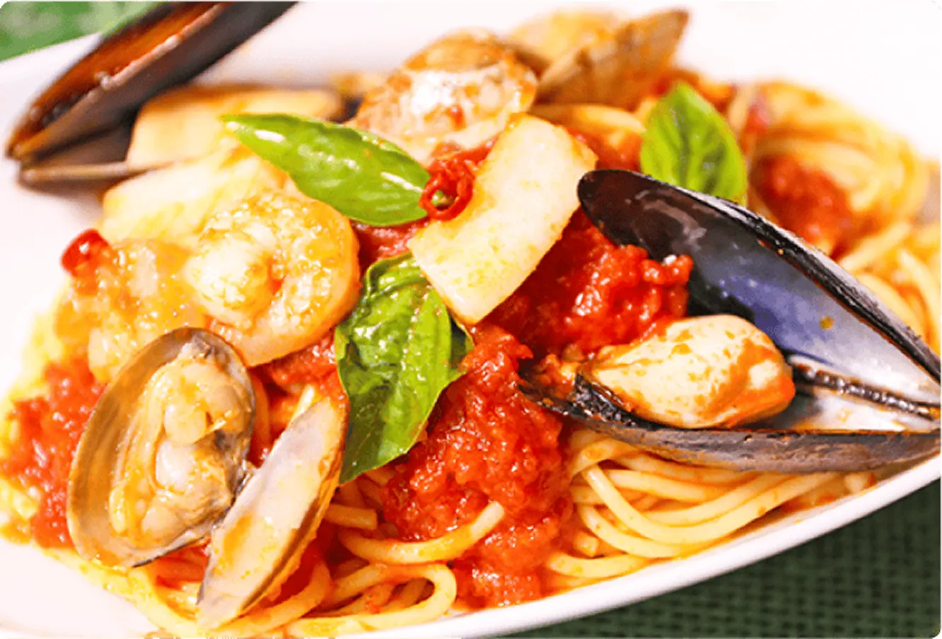魚介の旨みをたっぷり使い、白ワインで引き出した手作りソースが絶品。豊かな風味を楽しめる一皿です。