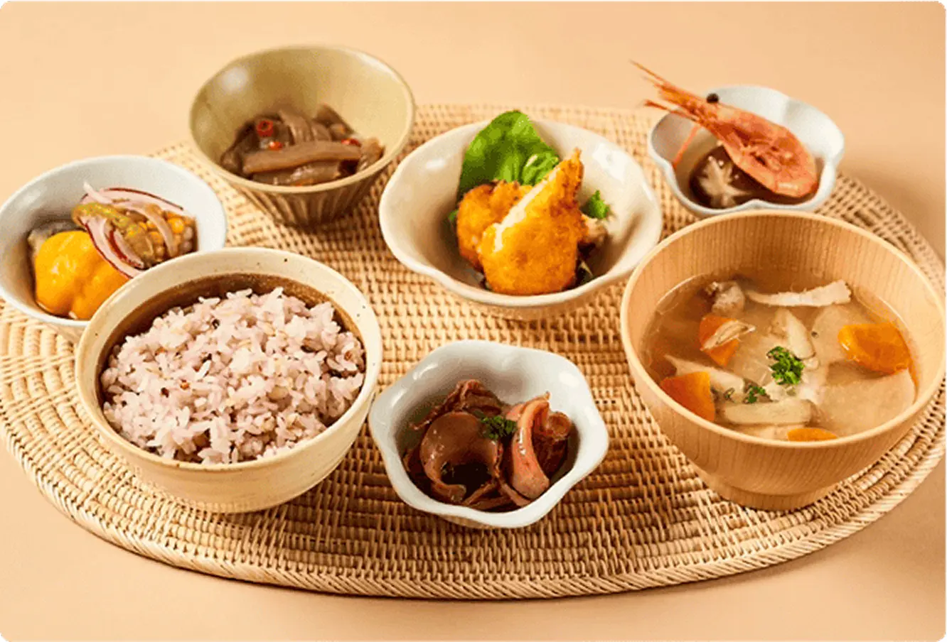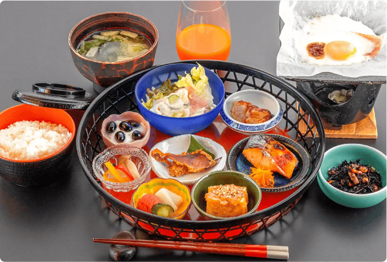 敦賀の郷土食と発酵の知恵を活かした手作り御膳。やさしい味わいが心と体を整え、旅の朝を穏やかに彩ります。