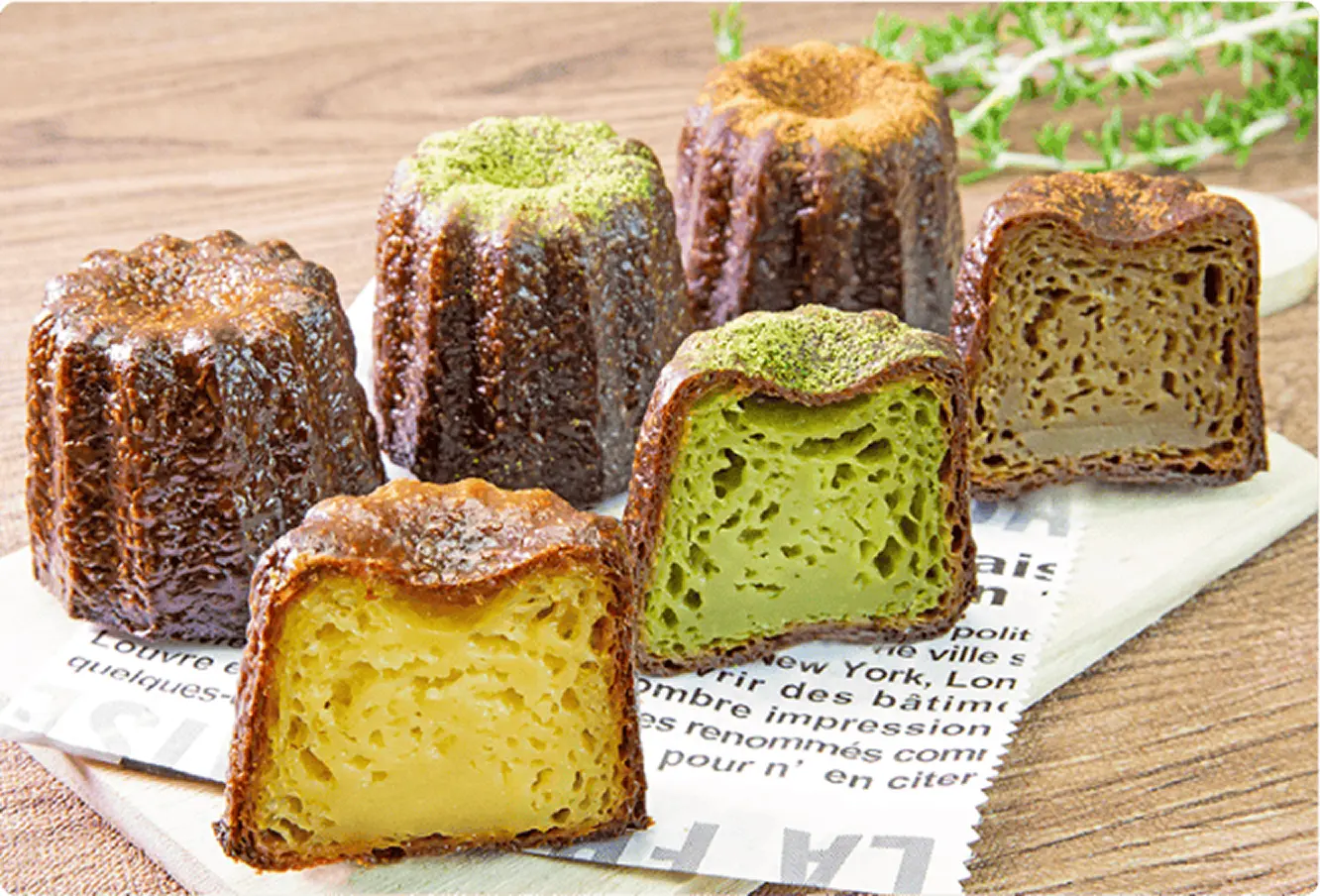 外はカリッと中はしっとりの自家製カヌレ1個にドリンク付き。プレーン・抹茶・アールグレイどちらも人気!お土産にも。